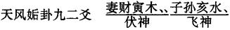 释义 | 伏神 易占名词。指借来之用神。观卦往往要看用神,当卦中没有用神爻时,先看月建日辰是否与卦相临(谓卦临日月或所需用神临日月参见“用神”),若不相临,则需从八宫首卦中寻借用神,伏于原卦与首卦的同位爻旁。此借来之用神即为伏神,而原卦同位爻则称飞神。如测求财事,得“姤”卦,卦中无妻财爻用神,需看月建日辰,若在寅卯月日得此卦,就以寅木卯木为用神爻;若不临寅卯月日,就需借该宫首卦之用神,即借“乾”卦二爻“妻财寅木”,伏于“姤”卦同位爻二爻“子孙亥水”旁: 此寅木为伏神,亥水则为飞神。断卦时,伏飞二神爻间的生克关系很重要。有歌诀云:“伏来克飞为出暴,飞来克伏反伤身,伏去生飞为泄气,飞来生伏生长生。爻逢伏克飞无事,用见飞伤伏不宁,飞伏不和为无助,伏藏出现审来因。”此例“姤”卦中是为亥水生寅木。谓之飞来生伏,为长生之象,吉象。 |