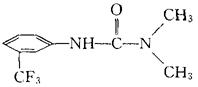 又称棉草完。 取代脲类内吸、选择性除草剂。化学名称:N′-(3,3氟甲基苯基)-N′N-二甲基脲。化学结构式如下。纯品为白色结晶,熔点为163~164.5℃,20℃时蒸气压为666.6×10-7Pa,难溶于水,易溶于有机溶剂,在空气中稳定,遇强碱、强酸易分解,无腐蚀性。 可通过杂草根部和茎叶吸收,叶部吸收的药剂不能进入叶脉。主要抑制杂草的光合作用。 可用于棉花、甘蔗、玉米、豌豆、马铃薯、高粱及果园,防除马唐、狗尾草、稗草、牛筋草、藜、蓼、龙葵、苍耳及马齿苋等一年生禾本科杂草和阔叶杂草。播后芽前使用。 对人、畜低毒,大鼠急性口服LD50为6416mg/kg,兔急性经皮LD50>10000mg/kg。对鱼类低毒,对眼和皮肤有轻微刺激作用。
