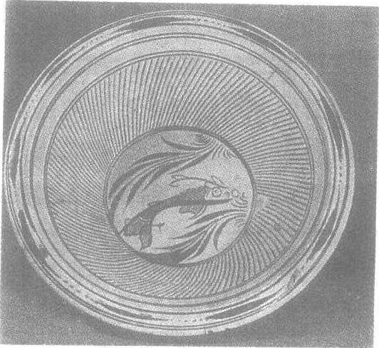元。高17厘米,口径49厘米。1972年北京市西绦胡同元代居住遗址出土。此盆折沿,平底,盆外施黑釉,盆里白釉画黑彩。口沿绘弦纹和草叶纹。内壁上部绘双弦纹3组,弦纹与盆底间满饰纵向水波纹。盆底双线分栏内绘鱼藻纹。所绘线条极为流畅活泼,将轻游的鱼儿和摇动的小草画得自然、逼真。盆内盛水后,有“如鱼得水”的效果。大瓷盆是元代磁州窑系的常见器形。北京首都博物馆藏有精致的鱼藻纹大盆。