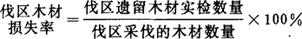 释义 | 伐区木材损失率 指已完成作业的某伐区木材损失量占该伐区的木材总量的比重,用百分数表示。 它是考核森林工业企业伐区质量的重要指标之一。其计算公式如下: 式中:伐区采伐的木材数量应包括规定范围内全部木材。 应以采伐工序检尺数计算,采伐工序若无检尺的,可由运出木材总量加上实检的伐区损失量求得。 伐区木材损失率还可用下式表示: 伐区木材损失率表明伐区生产中损失木材的程度。 |