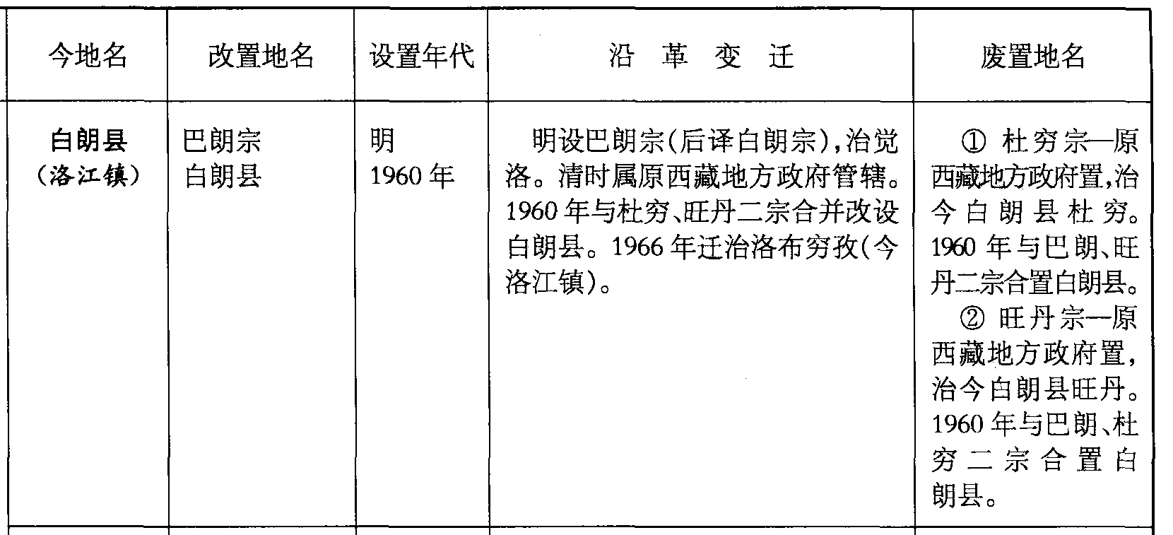 白朗县(洛江镇)巴朗宗白朗县明1960年明设巴朗宗(后译白朗宗),治觉洛。清时属原西藏地方政府管辖。1960年与杜穷、旺丹二宗合并改设白朗县。1966年迁治洛布穷孜(今洛江镇)。❶ 杜穷宗—原西藏地方政府置,治今白朗县杜穷。1960年与巴朗、旺丹二宗合置白朗县。❷ 旺丹宗—原西藏地方政府置,治今白朗县旺丹。1960年与巴朗、杜穷二宗合置白朗县。