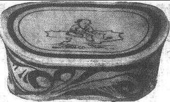 宋代北方民窑代表作。长29. 4、宽22. 8、高11厘米。呈椭圆形,中间稍凹,略前倾斜。采用含氧化铁的贫铁矿石做绘料。在施白色护胎釉的瓷坯上,以粗细相间的两条线为边框。中间绘一戏童坐在坡石上,右手执笔,左手摊纸,皱眉凝思,身旁置墨和砚,脚下几缕小草。以简练的笔法,勾勒出一幅耐人寻味的画面,具有浓厚的民间生活气息。现藏旅顺博物馆。