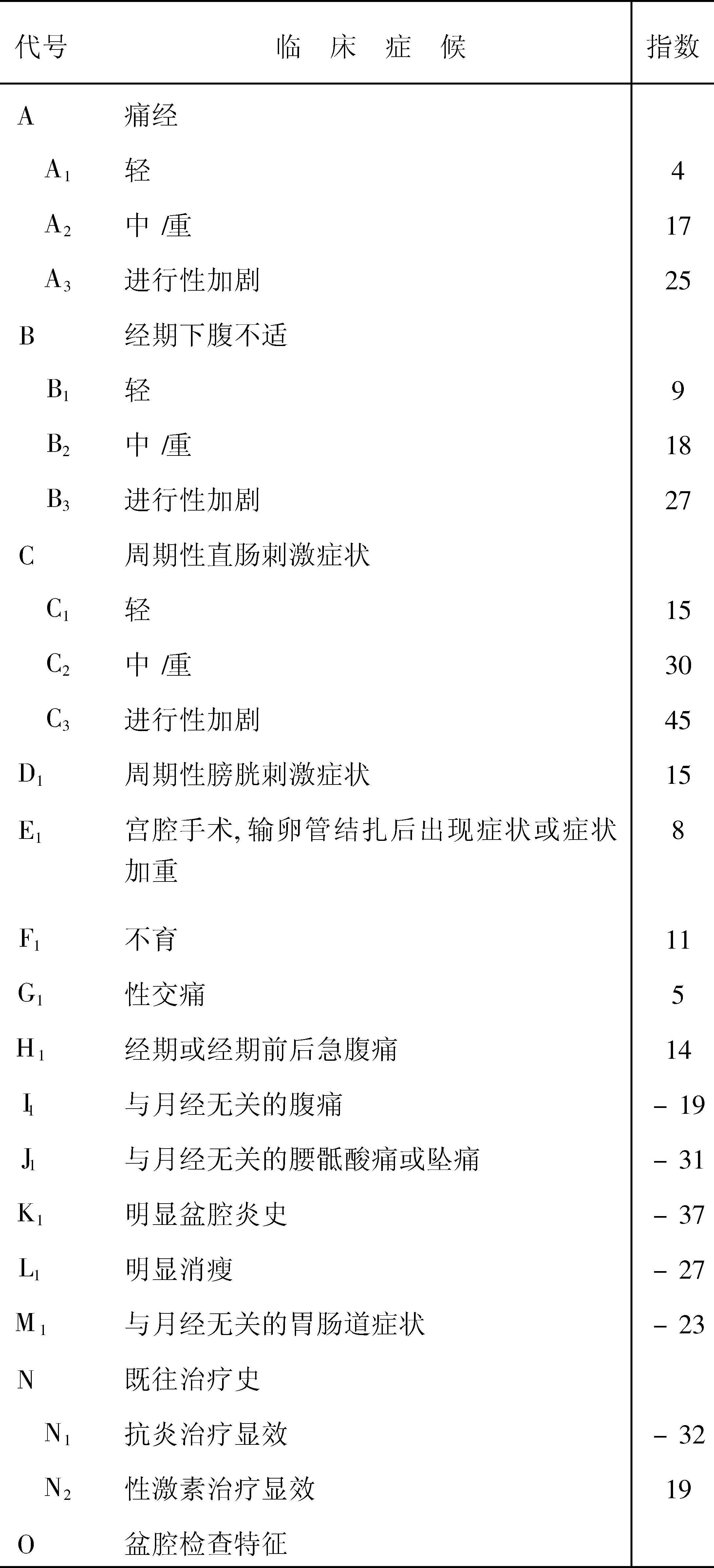 计量诊断指数表