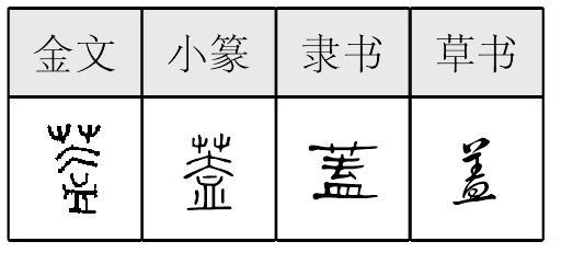 蓋,形声,从艸,盍声,本义读ɡài,盖房子用的毛苫类覆盖物,引申为建造(房屋)、由上而下地蒙上、掩饰、打上(印记)、器物上部起遮蔽作用的东西、物体背部的甲壳、古代马车上像伞一样的遮蔽物等,假借为姓;又读ɡě,假借为姓。汉代俗字、《手头字》、《简体字表》、《简化字表》简作“盖”,据草书楷化。 【辨析】 用于姓时有两个读音,应按习惯读。盖 蓋; 金 篆 隶gài【析形】形声字。金文、小篆字形从艸,盍(hé)声。“盍”像上盖下皿之形,表示覆盖,兼表意。隶书字形变后“艸”与“盍”上部糅合,遂成“盖”。 【释义】《说文》:“苫也。”本义指用芦苇或茅草编成的覆盖物。引申为覆盖或指有覆盖作用的东西,如[盖子]、[车盖]等。古人造房子,常常在四面墙壁筑成后再在屋顶上加盖,取此特征,古人也把造房子称为[盖房子],并把打地基、筑墙、做门窗等程序亦涵盖在内,故“盖”有建筑、建造之义。“盖”的动作是自上而下的,而且盖子总是高于被盖的物体,所以又有超过、胜过之义,如[盖世无双]。[华盖]古代马车的车厢上一般装有活动装置的车盖,华盖用指帝王或达官贵人所用的伞形车盖。 【shape analysis】It is the pictophonetic character.In Bronze Inscriptions and small seal script, it is related to艸(cǎo, grass)in meaning and sounds like盍(hé). 盍 in ancient Chinese is shaped like a vessel with a lid, expressing cover. 【original meaning】Covering woven with reed or thatch. 盖〈动〉用板状物从上往下狠打。 《金》五八: 打勾约二三十马鞭子,然后又~了十栏杆,打得皮开肉绽才放起来。 <方>今山东阳谷话有此语。 |
