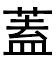 盖gài〖名词〗 车盖,车篷(2)。《管晏列传》:拥大盖。——支起大车盖。《待漏院记》:撤盖下车。——撤去车篷,[宰相]下车。 盖蓋gài❶ 用茅草编的覆盖物。《左传·襄公十四年》:“乃祖吾离被苫~,蒙荆棘,以来归我先君。”(吾离:人名。被:同“披”。) ❷ 搭盖。王褒《僮约》:“治舍~屋。” ❸ 器物的盖子。《后汉书·张衡传》:“合~隆起,形似酒尊。” ❹ 指车盖、伞等遮阳挡雨的用具。邹阳《狱中上梁王书》:“白头如新,倾~如故。”苏轼《教战守策》:“风则袭裘,雨则御~。” ❺ 覆盖,掩盖。《老子》:“~之覆之。”《楚辞·九章·悲回风》:“万变其情,岂可~兮!” ❻ 超过,胜过。《史记·项羽本纪》:“力拔山兮气~世。”又《淮阴侯列传》:“且臣闻勇略震主者身危,而功~天下者不赏。” ❼ 副词。大概。魏征《谏太宗十思疏》:“善始者实繁,克终者~寡。”袁枚《祭妹文》:“四肢犹温,一目未瞑,~犹忍死待予也。” ❽ 连词。用来承接上文,说明原因。《屈原列传》:“屈平之作《离骚》,~自怨生也。”苏轼《石钟山记》:“余是以记之,~叹郦元之简,而笑李渤之陋也。” ❾ 句首语气词。无实在意义,其作用只是引出下面的议论或说明。王安石《答司马谏议书》:“~儒者所争,尤在于名实。”宋濂《送东阳马生序》:“~余之勤且艰若此。” ❿ 通“盍”。相当于“何不”。《礼记·檀弓上》:“子~言子之志于公乎?”又相当于“何”。《庄子·养生主》:“善哉!技~至此乎?” ⓫ 通“阖”。门扇。《左传·庄公三十二年》:“荦有力焉,能投~于稷门。”(荦:人名。稷门:鲁国国都城门名。) 盖*蓋B8C7 (一)gài❶位于器物顶部,起遮蔽作用的部分:锅~/瓶子~儿。 ❷遮掩,蒙上:遮~/掩~/把被子~上/把壶盖儿~上。 ❸压倒,压过:功名~世/叫喊声~过了他说话的声音。 ❹指印图章的动作:~章/~戳儿。 ❺建(房屋):~房/~大楼。 ❻〈文〉指伞:车~。 ❼<文>语气副词,表推测,大概:与会者~千人。 ❽<文>连词,承接上文说明理由或原因。 (二)gě姓。 覆盖物 覆盖物屋(素~) 覆蒙 覆盖器物的东西:盖(盖子;锅~;壶~;缸~) 遮盖在物体外的东西:罩(罩子;纱~;灯~) 草编的覆盖物:盖 苫(苫盖) 车轼上的覆盖物:幭 簚 古代车前横木上的覆盖物:幦 覆盖物的边沿或伸出的部分:檐(~帽) ☚ 某种用途的物品 玩物 ☛
