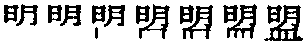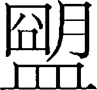 【提示】日中间的一横与月中间的两横,宋体与左右两边相接,楷体与左边相接,与右边相离。皿,第四笔宋体是竖,楷体是撇。 *盟méng13画 皿部 (1) 立誓;缔约: 海誓山~|~主。 (2) 不同团体之间或不同国家之间的联合: 同~国|工农联~。 (3) 结拜的: ~兄|~弟。 (4) 内蒙古自治区的行政单位,包括若干旗、县、市: 哲里木~。 盟méng商代甲骨文和西周初期金文象器皿中有血(块)形。古书《周礼》加盟的人嘴唇涂上牲畜的血,表示诚意。从皿,上内似血(块)。甲骨文或从皿从囧(jiǒng窗户),《说文》小篆以此为字头。周初金文或从血,朙(明)声。韵变如明萌、平砰、并碰例。从囧也是“明”省声。战国后或从明声。旧时指个人或国家间宣誓缔约,现代指国和国或阶级和阶级的联合。如:盟军|同盟互助。组词如:同盟|联盟。现代又指内蒙古自治区的行政单位。古书里明字也假借为盟字。过去盟作发(誓)义时也读míng,如:盟个誓。现在《审音表》规定统读méng。 盟★常◎常
