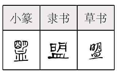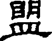 ménɡ形声,从皿,明声,本义为杀牲歃血,缔结誓约,昭告神明,引申为发誓、集团或国家之间的联合体、结拜等,假借为内蒙古自治区的行政区划单位,相当于地区。盟 甲 金 篆 隶ménɡ【析形】甲骨文字形为会意字,像皿中有血之形。金文字形逐步演变为从血,朙(明)声的形声字。隶书字形变后改从皿旁,后声旁也统一为明。 【释义】《说文》:“ ,《周礼》曰:国有疑则盟诸侯,再相与会,十二岁一 ,北面诏天之盟司慎、司命,杀牲歃血,朱盘玉敦,以立牛耳。 ,篆文从朙。”本义是古代诸侯为释疑取信而对神立誓缔约的一种仪礼。古代诸侯结盟时,需杀牲歃血,盛酒于器,向神发誓,故字从血。后泛指结交,缔约;又指发誓;也指依一定信约结成的密切联合或组织,如[联盟]、[盟军]等。[城下之盟]敌人兵临城下时被迫接受的屈辱盟约。 【shape analysis】It is the associative character.In Oracle it is shaped like a utensil with blood in it. While in Bronze Inscriptions, it was developed into a pictophonetic character,related to 血(xuè, blood) in meaning and sounds like the pronunciation of朙(明,míng). 【original meaning】 A swearing rite that ancient kings held to gods for eliminating suspicion and establishing trust. When forming an alliance, ancient kings had to kill animals and smear the blood on the mouth, fill containers with wine and swear to god, so the meaning part of the character is 血. 盟 ☚ 皿 丙 ☛ 00000252 |