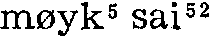 目屎mёük31sai31[mφyɂ sai]浓眼眵 ⊳~囫囵丸敆目睭𠲥(眼眵成团黏在眼睛上)。 目屎一1247①名眼眵。⑴赣语。福建泰宁〖 〗。⑵客话。福建连城〖 〗、长汀〖 〗、永定下洋〖 〗、明溪〖 〗。⑶闽语。广东汕头。翁辉东《潮汕方言・释身》上:「目分泌物,俗呼『~』,应作目眵。」广东潮州〖 〗、海康〖 〗、揭阳〖 〗、潮阳〖 〗、雷州〖 〗。福建宁德〖 〗、福州〖 〗、三明〖 〗、永春〖 〗、漳平永福〖 〗、古田〖 〗、仙游〖 〗、福清〖 〗。②名眼泪。闽语。福建永春〖 〗。伊老流~她常流眼泪。福建厦门〖 〗、顺昌埔上〖 〗。台湾北部〖 〗。   |