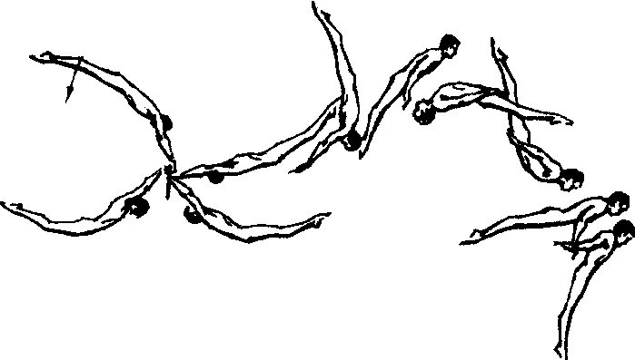 释义 | 直体后空翻两周下 直体后空翻两周下吊环高难度下法之一。在1977年以前历届颁布执行的男子体操比赛评分规则中还没有出现。1979年出版执行的男子体操评分规则才将其定为C组动作,后经1985年颁布执行的《国际体操男子评分规则》定为新增加的D组动作。1989年、1993年国际规则又降为C组动作。它是前苏联运动员安德里阿诺夫在1977年世界杯比赛中首先使用的。尔后这一高难下法为更多的优秀运动员所掌握,并以此取得了好成绩。如中国运动员李宁在1985年加拿大蒙特利尔第23届世界体操锦标赛夺得吊环冠军,采用的下法就是这个动作。动作是以吊环悬垂大摆为技术基础,并以直体后空翻下、团身后空翻两周下等动作的学习掌握为前提,同时受着技巧、单杠直体后空翻两周下这一类动作或下法的影响,渗透乃至移植而成。它的做法是前摆时采用悬垂大摆振浪技术,一般多从倒立或高转肩开始,经垂线阶段沉肩明显,然后猛力向前上兜腿,造成稍屈髋的外在形态,然后两臂向后引环,当摆至环上45°左右,急剧制动腿,两臂继续向头后引环随即放手;在放手的同时,收颏、梗头、提气、紧上体,保持直体向后翻转;当翻转至第1周的3/4时,再急剧向后抬头,提肩,身体极力后屈,缩短翻转半径,加快翻转速度,以极快速度完成直体第2周的翻转;当翻至头朝下目视地面时,立上体,臂侧上举,准备落地。要想做好这个动作,应先学会技巧弹板或绷床的直体后空翻两周,还应学会吊环的悬垂大摆和直体后空翻下、团身后空翻两周下等动作,并以此作为诱导练习的主要内容。练习时,摆动幅度要大,沉肩明显充分,兜腿猛力而又持续,制动急剧,放手及时果断。在空中翻转时,必须保持一定的高度,第1周和第2周翻转之间衔接要紧密,动作连贯快速,防止放手过早或过晚,避免翻转时不应有的收髋或收腹等毛病。 ☚ 直体后空翻转体360°团身后空翻下 直体后空翻两周转体360°下 ☛ 直体后空翻两周下 直体后空翻两周下简称“直体两周下”,单杠高难度跳下动作之一。是由屈体后空翻两周下发展而来,由于翻转半径长,所以比团身、屈体都难。目前直体两周下人体空中翻转的姿势,有稍微前屈和后屈出背弓两种,但从进一步发展技术角度出发,应该提倡前一种做法。技术要点:向后大回环加速要快,振浪下沉要狠,顺势兜腿要猛。当肩轴上升到杠水平面后,顶肩撒手,人体进入“倒飞”后立即脚面制动,臂贴大腿,梗头含胸以稍前屈姿势进行第一周翻转。接着头部急遽后抬前梗(幅度小,速度快),紧髋振胸来加速横轴翻转,当第二周翻转胸部朝下时,立即梗头上顶,起肩抬上体,两臂侧举,并保持紧髋姿势进入落地。当熟练掌握直体后空翻接团身后空翻下技术后,可在滑车吊带保护下进行直接练习。基本掌握后,可在海绵坑上独立练习,从而进行强化。 ☚ 直体后空翻转体360°屈体后空翻下 直体后空翻两周转体360°下 ☛ |