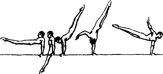 释义 | 直体绕杠下 直体绕杠下双杠项目简单动作之一。由支撑摆动开始,当直体后摆超过45°接近手倒立部位时,右手推离杠,重心移至左臂上,并以左臂为轴,直臂顶肩,迅速用头和肩向左后转,带动身体向左转体180°,挺身绕杠下。一般应先掌握屈腿绕杠下的技术后开始学习 该 动作。初学时帮助者站在练习者的左侧后方,左手握练习者的左上臂,右手拨送腰髋部助其完成绕杠下。 ☚ 屈腿绕杠下 支撑前摆转体90°侧腾越下 ☛ |