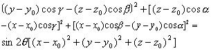 0= {cosα,cosβ,cosγ}. 特殊地,以Z轴为轴,原点为顶点,θ为半顶角的直圆锥面方程是x