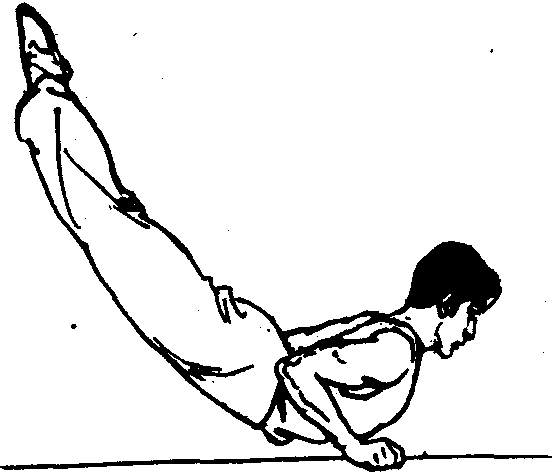 跳起向前撑地做扑虎, 俗称“鱼儿跌膘”。要求跳起后身体向前上方跃起,经腾空两手前伸撑地。也可以跳起后先屈腿,空中向上踹腿展体后成扑虎。参见“扑虎”条。
