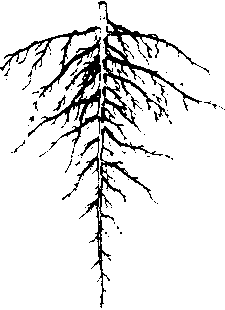 主根发达、粗长,各级侧根的直径依次递减,整个根系外观呈圆锥形的一类根系。绝大多数双子叶植物如棉花、大豆、油菜、黄麻等具有直根系。