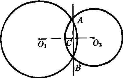 | 释义 | 相交两圆的性质 相交两圆的性质xi-angjiao liangyuan dexingzhi相交两圆的连心线(经过两个圆心的直线)垂直平分两圆的公共弦.如图,⊙O1与⊙O2相交于A,B两点,连心线O1O2交AB于C,则O1O2⊥AB,AC=BC.