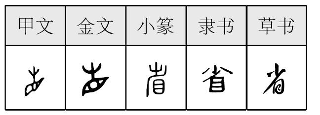 ❹ 多快好省 另见xǐnɡ。 省省(眚),甲骨文作  ,金文作  ,《説文》古文作 ,小篆作 。 从目,生聲。或説从目从屮 (chè)會意,表示觀察草木,甲骨文第三字形从木可作佐證。或説 “生” 下借筆省横則與 “屮”形近,作爲構形部件二者表意或同。初形隸定作 “眚”,秦後别爲“省” “眚” 二形。本義是察看、視察,引申爲探望、醒悟、記得等義,以上意義文獻作 “省”,今音讀xǐng。又用作節省、减省等義,文獻亦作 “省”,而今音讀shěng。文獻作 “眚”者,則分擔反省、過失義,今音爲shěng。卜辭、銘文或用巡視義。銘文又或用作人名,或通 “生”。提示: 或説 “省”从屮,“屮”或即 “木” 的省形,故 “省” “相” 同源。“屮”演變爲 “生”,戰國時期聲化。 楚簡帛文作  ,沿襲古體。秦簡牘文作 ,古隸典型。 省(9画) ❶shěng ❷xǐng