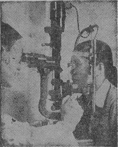 释义 | 眼压测量法 眼压测量法利用眼压计或其他方法测定眼内压的技术称为眼压测量,是诊断和估计青光眼及其他一些眼病疗效和预后的重要手段之一。用液压计直接接通前房测量眼内压的方法只能在实验条件下使用。目前临床上常用的眼压测量方法都是通过测定眼球壁的张力而换算成眼内压的。球壁硬度的变化,必然会影响眼压的数值,特别在用压陷式眼压计测量时,受眼壁硬度的影响更大。有时需要加以校正后方能换算成正确的眼压数值。 Schiotz眼压计 (2) 压平眼压计测量法: 目前临床上常用的压平眼压计为Goldmann型和Маклаков型。 压陷眼压计测量法 Goldmann压平眼压计测量法: 用可变重量压平一个固定面积的角膜,根据所需重量来测知眼压。角膜被压平的直径为3.06mm,压平面积为7.354mm2。故当角膜曲率半径为7.8mm,中央厚度为0.5mm的条件下,由压平力量造成的眼内容积改变仅为0.56μl,仅使眼压上升2.5%。 根据公式: logP ![]() 测量前先作眼球表面麻醉、结膜囊内放置荧光素纸片,将被检者头部固定于裂隙灯的颏架上,调节头部高低,将蓝色滤光片拨入裂隙灯光路中,开大裂隙光圈,并使裂隙灯与显微镜夹角呈60°,继之安置眼压计于裂隙灯上,嘱被检者睁大睑裂直视前方。接着检查者正对被检眼向前推裂隙灯,直到显微镜下看到二个黄绿色半圆环。这时再旋转测压螺旋,直到两个荧光素半环内缘相接为止。然后后退裂隙灯,将读数鼓上得出的读数乘10,即得出眼压的毫米汞柱数。用此法测出我国人正常眼压平均值为13.2~14.2mmHg,其最高限为21mmHg,超出者为病理范围。 压平眼压计测量法(Goldmann型) Маклаков压平眼压计测量法:系用一固定重量压在角膜上,根据压平角膜面积的大小来测知眼压。 测量前先作眼球表面麻醉,病人取仰卧位,在消毒后的眼压计脚板上涂一层菲薄的染料 (胶状银甘油,弱蛋白银,龙胆紫等),然后将眼压计放在病人的角膜上,瞬间取下眼压计,将砝码的接触面压印于事先被90%酒精浸润的白纸上,再用Поляка透明尺测量印出的圆形印迹直径,求出眼压的毫米汞柱数。一般情况下,测量眼压多用10g砝码,每眼测量二次以作对照。若需测量弹性眼压曲线,则依次应用四种砝码(5.0、7.5、10、15g),并把测得的结果记录于特制的表格上,连接四点作出曲线。根据我国各地的调查结果,正常人眼压范围为16~24mmHg,大于28mmHg为病理范围。弹性眼压曲线的形态:正常人多呈近直线型或直线型。若增高数低于7.5或高于13mmHg,或曲线呈曲折型者,则为病理状态。 (3) 非接触式眼压计测量法: 系应用自动控制装置吹出一定压力的气流,在一定的距离吹压角膜,并用光学方法自动检测被气流吹平的角膜面积。当气流吹压角膜达到固定面积时,根据瞬间的气流强度,用电子计算机自动换算出眼压数值。由于器械不接触角膜,故使用时不需麻醉,而且可以避免交叉感染或角膜上皮损伤,故对大规模眼压普查尤为适用。 各种眼压计由于设计原理的不同,它们测量到的眼压值也有所差异,故在记录中应注明所用的眼压计的名称。眼压计应注意维修保养并定期按标准化要求进行鉴定,以免影响结果,贻误病情。 眼壁硬度测定 眼壁硬度是眼球壁对眼内容积改变所产生的抵抗力。眼壁硬度愈大,对眼内容积改变所产生的抵抗力也愈大;眼壁硬度愈小,则眼内容积改变时所引起的眼壁抵抗力就愈小,这对眼压测量中换算真实眼压时影响很大。眼壁硬度系数(E)是表示眼内压和眼内容积变化之间的数学关系,主要用来校正眼压。测量方法有: Schi⍥tz氏眼压计轻、重对读法 先用5.5g砝码测量眼压,得出读数R1;再用10g砝码测量一次,得出读数R2,如5.5g砝码测量时读数小于3,则改用7.5g砝码与15g砝码,测得一对读数。查表得出Pt1、Pt2和Ve1、Ve2(Vc为角膜压陷容积),代入公式: ![]() 两种眼压计联测法 先用Goldmann压平眼压计测出眼压Pt(A),再用Schi⍥tz压陷眼压计测出读数并查表求出Pt(S)和Vc(S)则按公式: ![]() Φ-К弹性眼压计测量法 用Φ-К弹性眼压计作眼压测定,然后按Вургфт设计的计算图,将已测得的眼压值换算成P0,再取一重量测得Pt及Ve值,代入公式: ![]() ☚ 眼底检查法 眼压描记 ☛ |