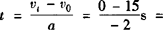 答 则物体做匀速直线运动的速度为5m/s,减速运动的加速度大小为2.5m/s2,方向和匀速运动的速度方向相反,整个过程的位移为s=s1+s2+s3=32.5m. 例2 在平直的公路上,一汽车以15m/s的速度行驶,从某时刻开始刹车,以2m/s2的加速度做匀减速直线运动,问刹车10s后车离刹车点多远? 分析 汽车在做减速运动过程中,需要一定的时间.求一定时间内刹车的位移时,汽车刹车时间可能比这个时间长,也可能比这个时间短,所以要先判断汽车刹车用的时间.如果刹车用的时间比这个时间短,那么要用刹车时间求位移;如果刹车用的时间比这个时间长,要用这个时间求刹车位移,切不可盲目套用公式. 解 首先求出汽车刹车用的时间,v0=15m/s,vt=0,a=—2m/s2,由vt=v0+at, 求得刹车时间 则汽车在开始刹车后经过7.5s时即停止,后2.5s汽车处于静止状态.则汽车刹车10s的位移s=v0t+1/2at2=15×7.5+1/2×(—2)×7.52=56.25m. 答 56.25m. |