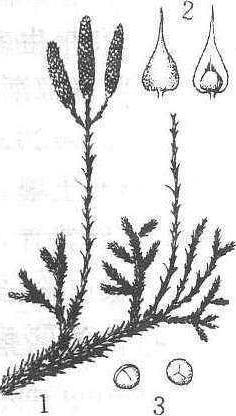 1.植株,顶生孢子叶球 2.孢子叶的正反面 3.孢子