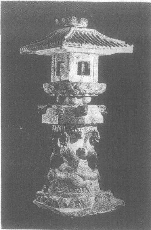释义 | 石灯 石灯唐。高193厘米。原存陕西省乾县石牛寺,1962年移入陕西省博物馆藏。为供养灯。计九层:连绵起伏的群山座上,支承着由四条纠缠虬曲,盘旋而上的蟠龙构成的灯身;矩形灯室和近似攒尖顶的灯盖座落在一朵盛开的莲花上,莲与灯身则以多角石台和花状物相接。此灯造型优美,层次分明,错落有致,是一件独具匠心的艺术佳作。 ☚ 石雕菩萨头像 乾陵石蹲狮 ☛ |