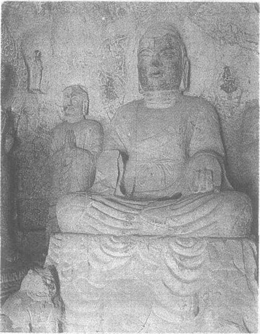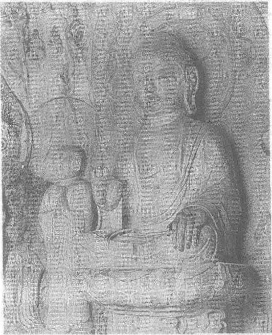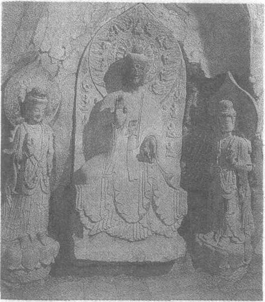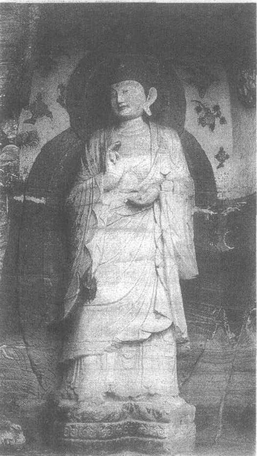 释义 | 石雕阿弥陀佛像 石雕阿弥陀佛像北齐,初唐间。高327厘米。河南省洛阳市龙门石窟药方洞西壁主尊造像。佛头挽磨光的低肉髻,短粗的脖子上刻三道弦纹,内衣双带在胸前系一结后向两边分垂,外穿双领袈裟。左手曲肱下垂以食指点膝,头微仰,结跏趺坐于圆角高台座上,脸形方圆,张口平视前方。此尊造像丰满圆润,刀法由平直刀变为圆刀,明显的棱角转折已消失,呈现出北魏向唐代过渡时期的特征。 ☚ 石雕礼佛图 石雕胁侍菩萨像 ☛ 石雕阿弥陀佛像 石雕阿弥陀佛像唐。高393厘米。河南省洛阳市龙门石窟万佛洞两壁中央主尊。头挽刻满涡纹的高肉髻,眉饰白毫相,长耳及颈,身着右袒式袈裟,衣褶条条凸起,颇有“曹衣出水”的意味。右手作施无畏印(手指现已残断),左手抚膝,结跏趺坐于覆仰莲高束腰须弥座上,目视前方,双唇微启,凝神沉思着,背光和头光由环带状分布的莲瓣纹、七个小化佛、蔓草形火焰纹组成。 ☚ 石雕释迦牟尼佛像 石雕普贤菩萨像 ☛ 石雕阿弥陀佛像 石雕阿弥陀佛像北宋。高6米。四川省安岳县圆觉洞第16窟。阿弥陀佛赤足立于莲座上,头有螺髻,额间有白毫相,面容清秀,双目细长,嘴部线条柔和,两耳的轮廓线突出。身披通肩袈裟,身上的衣纹自然,袖口的皱褶富于装饰性。内着僧祗支。右手作说法印;左手作予愿印。上身微向右侧,头也自然向同方向扭转,其姿势和神态更像菩萨,端庄而柔美,具有独特的艺术效果。 ☚ 安岳石卧佛 石雕观音菩萨像 ☛ 石雕阿弥陀佛像 石雕阿弥陀佛像北魏。通高194厘米。甘肃省天水市麦积山石窟第127窟正壁龛佛造像。佛高挽的头髻上刻满涡纹,贴身僧祗支在胸前打成蝴蝶结。外穿宽袖袈裟,下着百褶长裙,右手作施无畏印,左手指残,似为降魔印,结趺坐于台座上,宽大的裙裾飘落于座下。其眉间饰白豪相,长圆的面庞上,柳眉、细目、小嘴均显露着笑意,神态颇为温和。舟形的背光和圆形的头光上,饰满飘逸流动、翩跹对舞的飞天,浓烈的火焰纹,曲卷的蔓草纹及零星的散花。此尊造像造型秀美,雕刻手法高超,为我国石窟造像不可多得的艺术珍品。对于此窟造像的创作年代,目前尚有争议,一些研究者认为是北魏,也有学者认为其应为西魏所作,究竟为西魏还是北魏,尚待进一步的研究。 ☚ 泥塑坐佛像 泥塑胁侍菩萨像 ☛ |
