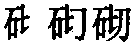 砌 金文; 篆qì[石(意符) + 切(聲符)→砌(《説文》:“砌,階甃zhòu也。從石,切聲。”砌,建築時壘磚石,用泥灰粘合:砌牆。)] [唐] 高適《聽張立本女吟》:“自把玉釵敲砌竹,清歌一曲月如霜。”(拔下玉釵節打階下修竹,清唱高歌一曲月色如霜。) [宋] 秦觀《踏莎行·郴州旅舍》:“驛寄梅花,魚傳尺素,砌成此恨無重數。”(注:驛,指驛站,古代的郵局。尺素,指寫在白綢子上面的信,尺指素的長度。) 砌qì(9画)