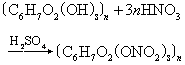 又名纤维素硝酸酯,俗称硝化纤维,简称NC。由浓硝酸和浓硫酸的混酸跟纤维素反应制得。浓硫酸起催化作用,兼起溶胀纤维素和吸水作用: