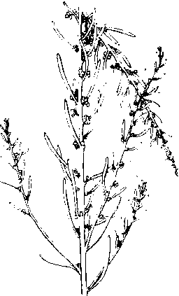 碱蓬 碱蓬一年生草本,高20—100厘米。茎直立,浅绿色。叶无柄,丝状条形,半圆柱状,灰绿色。种子横生或斜生,双凸镜形,黑色。花果期7—9月。沙湾、哈密见生长。可烧灰提碱,种子可炸油。抗干旱、耐盐碱植物。 |