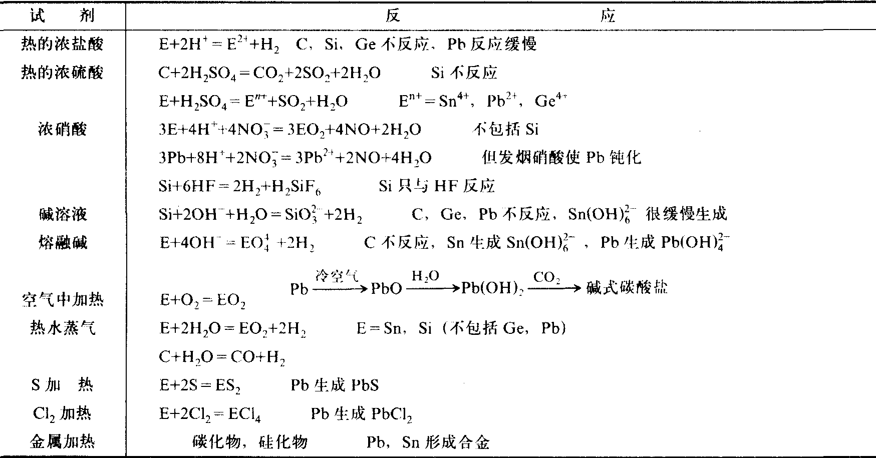 碳族元素价电子层构型为ns2np2,因此可生成氧 族元素的化学性质相差很大,见表2。化态为+2,+4的化合物,后者主要是共价型的。碳