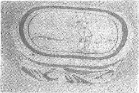 释义 | 磁州窑童子钓鱼图瓷枕 磁州窑童子钓鱼图瓷枕宋。前高7.7厘米,后高10厘米。1955年河北省邢台市出土。河北省博物馆藏。形制为腰圆形,是宋代瓷枕中一种流行式样。枕壁四周以黑彩绘卷叶纹,枕面有一幅儿童垂钓图。画面上为一个留孩儿发、穿长袍的男童,站在杂草丛生的河边垂钓。他那专注的神态,前倾的身体,粗制的鱼竿和水中即将上钩的鱼儿,组成了一幅平凡而又极具生活情趣的图画。磁州窑见“磁州窑鞠球图瓷枕”条目。 ☚ 磁州窑鞠球图瓷枕 定窑褐彩彩绘划花瓷枕 ☛ |