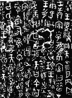【简介】: 成王时器铭。搨本,大篆。铭文十二行,存约百一十字。《商同靑铜器铭文选》收录。 【赏析】: 《何尊》铭文是西周早期最爲自由放纵的书法佳作。它那字形大小和线条粗细的悬殊对比、茂密得几乎无法分辨行列的章法,浑厚坚实而又变化裕如的运笔,无不给人以强烈的震撼。它那些残泐之处和古老难识的字形,也爲作品增添了几许神秘的意味。它仿彿蒙著满身的尘土,拖著无穷的疲惫,踉踉跄跄,从混沌初开的世界中走来。它那斑斑创痍负载著英雄史诗般的光彩,它在拙朴木讷的神情中夹带著庄重与坚毅、灰谑与自嘲,陈述了当年继位于多事之秋的成王遵照父亲的遗训,在大敌伺侧、动蕩不安之际闢建第五都城成周、心情沉重地在“京室”(即太室,祭天祀祖所在)训诫宗室子弟奋发图强的隐秘。《何尊》铭文正是以它那独特的艺术风格和表现形式,引导我们迈进历史文化的深层结构之中的,这也许是地处前线的成周书家所固有的心态之眞实的披露吧。  |