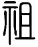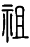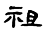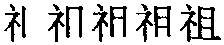 【提示】礻,不要错写成衤。且中间的两横,宋体与左右两边相接,楷体与左边相接,与右边相离。 *祖zǔ9画 示部 (1) 家族中较早的前辈: ~宗|~先|远~|高~|曾~。 (2) 父母的上一辈: ~父|~母。 (3) 开国君主;某种事业、派别的创始人: 汉高~|宋太~|佛~|鼻~|~师爷。 祖 ☚ 祔 祏 ☛ 祖zǔ甲骨文至春秋金文作且。音变如且租组阻例。或说象神主牌位形,或说象男性生殖器。春秋以后或加示旁,从且,且亦声。春秋和战国又有加又(手)旁的。至战国逐渐加多。小篆以后从示,且声,定型。本指父亲的上一代。如:祖父。引申指先代。如:祖宗|始祖。组词如:祖国。又引申指对跟祖父同辈的人的称呼。如:外祖父|外祖母|伯祖。又引申指某种事业或流派的开创者。如:鼻祖|开山祖师。 祖★常◎常