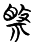 祖zǔ祖❶將行犯軷之祭也。《詩經·大雅·烝民》:“仲山甫出祖,四牡業業,征夫㨗㨗,每懷靡及。” 鄭玄箋:“祖者,將行犯軷之祭也。” 《詩經·大雅·韓奕》:“韓侯出祖,出宿於屠。” 鄭玄注:“祖, 將去而犯軷也。” ❷將葬,祖於庭。《周禮·春官·喪祝》:“及祖,飾棺,乃載,遂御。”鄭玄注:“鄭司農云:祖,謂將葬,祖於庭,象生時出則祖也。” ❸宗廟。《周禮·冬官·匠人》:“左祖右社,面朝後市。”鄭玄注:“祖,宗廟。” ❹始也。《儀禮·聘禮》:“出祖釋軷, 祭酒酺,乃飲酒於其側。” 鄭玄注:“祖,始也。” 《禮記·仲尼燕居》:“凡衆之動失其宜,如此,則無以祖洽於衆也。” 鄭玄注:“祖,始也。” ❺王父也。《儀禮·既夕禮》:“夙興,設盥於祖廟門外。” 鄭玄注:“祖,王父也。士,祖禰同廟。” ❻將行而飲酒曰祖。《儀禮·既夕禮》:“賓出,主人送於門外,有司請祖期。” 鄭玄注:“將行而飲酒曰祖,祖,始也。” ❼謂移柩車去載處。《禮記·檀弓上》:“曾子弔於負夏,主人既祖填池,推柩而反之。” 鄭玄注:“祖,謂移柩車去載處,爲行始也。” ❽祭五帝五神於明堂曰祖。《禮記·祭法》:“祖顓頊而宗堯。” 鄭玄注:“禘、郊、祖、 宗, 謂祭祀以配食也,……祭五帝五神於明堂曰祖、宗。祖、宗,通言爾。” ❾考也。《禮記·祭法》:“曰祖考廟。” 鄭玄注:“祖,考也。” ❿猶 “發”也。《禮記·鄉飲酒義》:“亨狗於東方,祖陽氣之發於東方也。” 鄭玄注:“祖,猶發也。” ⓫讀曰 “阻”,厄也。《尚書·堯典》:“棄黎民祖饑。” 鄭玄注:“祖,讀曰阻,阻,厄也。” (《鄭氏佚書》) 古代名物 > 人體類 > 頭面部 > 鼻 > 鼻 > 祖 祖 zǔ 祖zǔ旧时北京古书店修绠堂货价暗码,谓数目七。参“石、崇、好、富、家、彭、祖、寿、高、年”条。 祖zǔ〖名词〗 父母以上的尊长,祖宗,祖先(12)。《驹支不屈于晋》:昔秦人迫逐乃祖吾离于瓜州。——从前秦国人在瓜州逼迫并驱逐你的祖父吾离。《贾谊治安策一》:毕以次各受祖之分地。——都按次序各人接受祖宗的分地。《柳子厚墓志铭》:七世祖庆。——他的第七世祖先名叫庆。