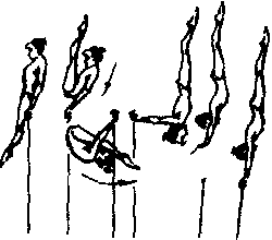 释义 | 祖霍尔德换握 祖霍尔德换握Zucholdschleudern是高低杠高难度动作。民主德国运动员祖霍尔德在70年代首先完成。它的价值在于经腾空换握成低杠手倒立的准确性。该动作的连接方法请参照“面向外,高杠悬垂前摆收腿经屈体悬垂向后穿腿换握低杠成倒立”。动作要领:从面向外的高杠后撑开始,收腹举腿支撑后倒,经屈体悬垂前摆,回摆,并利用回摆过程中的悬垂下沉,迅速向后上方伸脚展髋,边顶肩边将双肩扭转,双手顺之放离高杠,利用短暂的腾空双臂经两侧划至头部下方,撑低杠成手倒立。帮助方法参见“面向外高杠悬垂前摆屈体悬垂向后穿腿换握低杠成手倒立”。 ☚ 面向外高杠悬垂,前摆屈体悬垂向后穿腿换握低杠成手倒立 高杠屈体悬垂,向后弧形摆后转肩换握低杠成手倒立 ☛ |