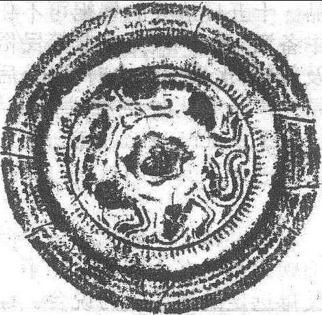 释义 | 神兽镜汉代生活用品。吉林市博物馆收藏。此镜为青铜铸造,表面呈银灰色。半圆球状钮,微凸素圆钮座。钮座之外有两只似龙似虎的半浮雕式神兽,相向游走。在兽纹之外有一周凸弦纹,其外是作放射状排列的篦齿纹。篦齿纹之外是由内向外倾斜突起的镜缘,其上有几何纹装饰,里圈是三角锯齿纹,外圈是单线水波纹,圈外边是凸弦纹。直径7.2、身厚0.2—0.4、缘厚0.6、钮高0.6厘米。 神兽镜 |