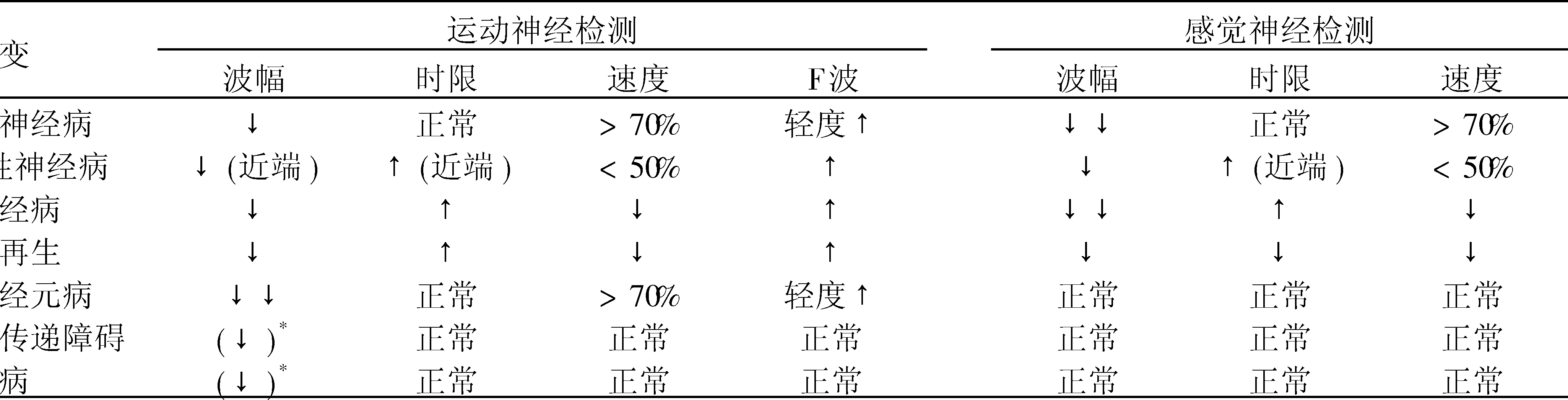 周围性神经肌肉病变时神经传导检测的异常型式