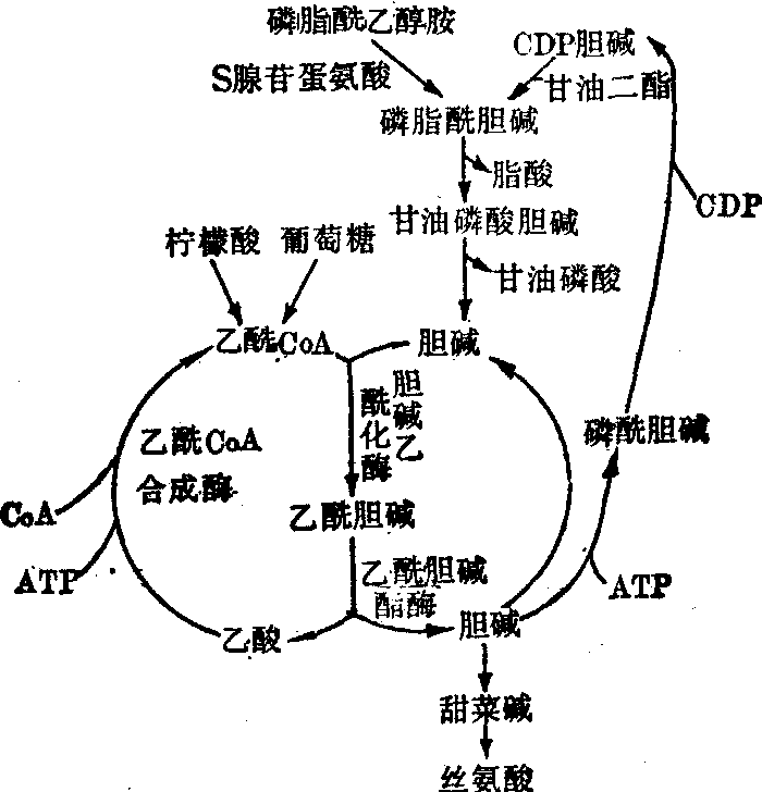 释义 | 神经递质 神经递质一个神经元的信息传递到下一个神经元时,必需释放化学物质做为中介。神经元支配效应器官(例如骨骼肌、平滑肌和心肌等)活动时,其轴突末梢也释放化学物质做中介,再将其信息传递到这些组织。神经元传递信息所借助的化学物质就称为神经递质。大多数神经元轴突末梢释放的递质是在神经末梢处合成的,也有在细胞体处合成后运送到轴突末梢去的。递质常常贮存在突触小泡内,以防止被细胞浆中的酶将其催化而破坏。但当递质释放并与下一个神经元膜上的受体结合发挥作用后,却迅速分解或流走。这一点也很重要,它决定了神经调节的灵活性,保证神经元的作用可迅速出现并立即终止。一个神经元兴奋时,其轴突的各个分支末梢所释放的递质是相同的,但不同的神经元,其轴突末梢释放的递质则可以不同。有的释放乙酰胆碱,有的释放去甲肾上腺素,有的释放多巴胺,有的释放内源性阿片样物质等。生理上依照神经末梢释放的递质不同,将神经元分为乙酰胆碱能神经元、去甲肾上腺素能神经元……等。目前已知的递质已超过20种,但在中枢神经系统中,哪些神经元释放哪种递质目前知道的仍是少数。对周围神经系统的神经末梢释放的递质了解较多,主要有两种(乙酰胆碱和去甲肾上腺素)。各种递质的神经元在中枢神经系统中都不是均匀分布的,而是相对集中在某些区域,并完成一定的机能。例如脑干的乙酰胆碱能神经元,其轴突末梢到达大脑皮层,它们兴奋时可出现觉醒。 ☚ 神经元间的信息传递 脊髓与脊神经 ☛ 神经递质neurotransmitter传递神经冲动的一种化学物质。由神经末梢释放,作用于次一级神经元或效应器(即心脏、平滑肌等)的受体,完成神经冲动的传递过程。传出神经递质主要有乙酰胆碱、去甲肾上腺素等。中枢神经递质包括乙酰胆碱、去甲肾上腺素、多巴胺、5-羟色胺、γ-氨基丁酸、甘氨酸、谷氨酸、组胺、脑啡肽等。 神经递质neurotransmitter又叫化学递质,系神经细胞之间或神经细胞与效应细胞之间起传递作用的化学物质。此类递质分中枢递质和外周递质:中枢神经元间递质有单胺类、肽类、氨基酸类、乙酰胆碱等;外周递质有去甲肾上腺素、乙酰胆碱、肽类和嘌呤类。递质能与受体发生特异性结合而传递冲动,发生生理效应。递质的作用不同;对下个神经元起兴奋作用的叫兴奋性递质;对下个神经元起抑制作用的叫抑制性递质。递质产生多少及性质有否变化,可影响神经功能,并产生相应的临床症状;医疗上已应用不同递质治疗某些神经系统疾病。 神经递质 神经递质在高等动物神经末梢的突触处,信号的传递是通过突触前神经元释放某种化学传递物质,即所谓“神经递质”(简称“递质”)来实现的。当神经递质与突触后神经元膜上的受体结合,可使之出现兴奋或抑制效应,从而完成信号的传递作用。 图1 神经组织中乙酰胆碱的代谢 胆碱乙酰化酶是一较稳定的碱性蛋白质,在中枢神经系统中主要分布在尾核、脊髓根中,从鼠脑提取纯化的酶分子量为65 000,主要存在于胞浆中,并可能与微粒体结合。它在神经末梢靠近突触前膜部位含量最高,这与乙酰胆碱在突触前神经元内迅速更新有关。 突触前神经元内合成的乙酰胆碱被囊泡摄取而贮存,每一囊泡约贮存104个乙酰胆碱分子,当神经冲动通过时,小泡所含有的乙酰胆碱从突触前膜全部释放排出,称为“量子式解放”。释放小泡的数量决定于突触前膜电位,换言之,乙酰胆碱的释放是一种电控分泌方式。这种释放还依赖于细胞外液的Ca2+,当突触前膜去极化时,Ca2+进入膜内,促进囊泡膜与突触前膜融合,从而使囊泡内容物排出。 乙酰胆碱的降解主要通过乙酰胆碱酯酶反应,这也是乙酰胆碱迅速灭活的主要方式。此酶普遍分布在靠近突触膜的附近,在神经细胞内结合在线粒体及微粒体的膜结构上。它的分子量约260 000,其活性中心包括两部分: ❶负离子部位,至少含一个谷氨酸的羧基,解离带负电荷,从而能将乙酰胆碱的季胺氮结合在酶分子上; ❷水解部位,包括组氨酸的咪唑基亲核基团及丝氨酸的羟基,能使乙酰胆碱从羰基碳原子处水解断裂。 乙酰胆碱释放后作用于突触后膜上的受体。受体主要有二种类型,一类可被毒蕈碱所激动,称为毒蕈碱样受体或M型受体; 另一类易为烟碱所激动,称为烟碱样受体或N型受体。N型受体分布在脊椎动物的神经、肌肉接点、植物神经节及小脑等部位; M型受体分布在中枢神经系统的大脑皮质及纹状体。在脑的某些部位尚发现同时兼有两种受体者。从电鱼的电器官及脊椎动物骨胳肌抽提纯化的N型受体蛋白质是一分子量为250 000~300 000的寡聚体,可能由5或6个亚基构成。亚基的分子量为40 000,其N末端为丝氨酸。乙酰胆碱受体蛋白质还含有中性糖3~5%。至于M型受体的本质,目前了解不多。儿茶酚胺 儿茶酚胺是指含有儿茶酚核的胺类化合物的总称,在神经化学中仅指多巴胺(即二羟苯乙胺)、去甲肾上腺素及肾上腺素三者,现认为多巴胺(DA) 及去甲肾上腺素(NE) 是作为哺乳动物的神经递质而发挥生物活性,而肾上腺素则为一激素,在两栖类动物,肾上腺素也是一种递质。 去甲肾上腺素不仅是交感神经末梢的递质,而且还是一重要的中枢神经递质。在脑干及下丘脑含量最多。去甲肾上腺素能神经元的胞体主要集中在桥脑及延脑的蓝斑核。多巴胺则主要是作为中