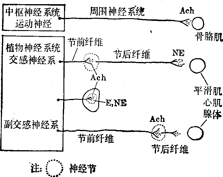 外周神经递质 简称外周递质。根据释放的递质不同,可将周围神经中传出神经纤维分成胆碱能神经和肾上腺素能神经两类。胆碱能神经兴奋时其末梢释放乙酰胆碱,它包括: ❶植物神经节前纤维; ❷全部副交感神经节后纤维; ❸小部分交感神经节后维纤(手、足心以外所有汗腺分泌神经、骨胳肌中血管舒张神经等); ❹运动神经。肾上腺素能神经兴奋时,其末梢释放去甲肾上腺素(NE),除大部分汗腺的分泌神经和骨胳肌的血管舒张神经外,交感神经的节后纤维都属肾上腺素能神经。肾上腺髓质受内脏大神经(末梢分泌乙酰胆碱支配,其中嗜铬细胞组织在胚胎中与交感神经都来源于外胚层神经嵴,故也分泌NE与肾上腺素(E)。 心肌、平滑肌(包括胃肠等内脏、血管、虹膜和睫状体肌)、许多腺体都受胆碱能和肾上腺素能神经双重支配,其中之一常占优势而起生理调节作用。 多巴胺为去甲肾上腺素的前体,也是具有生物活性的终末代谢产物,外周组织如肾实质、胰、肾、脑及肠系膜血管与冠状动脉等都有多巴胺能受体,受多巴胺神经元支配。兴奋时DA引起尿钠排出增加,胰分泌增多,肾、脑、肠系膜血管与冠状动脉舒张,血流增多。DA与Ach具有拮抗作用。 中枢神经递质 简称中枢递质。有乙酰胆碱、去甲肾上腺素、多巴胺、5-羟色胺,此四者于下丘脑、边缘系统等处浓度较高,为调节下丘脑释放激素的主要递质,此外尚有几种氨基酸,包括γ-氨基丁酸及组胺等被认为系递质者,详见表。 ☚ 激素分泌调节(反馈作用) 神经激素 ☛ 神经递质 神经递质neurotransmitter亦称“神经介质”。神经元之间传递信息的化学物质。在一个神经元与另一个神经元接触的部位(突触),神经冲动的传导叫突触传导。其传导原理是:来自突触前神经元的神经冲动到达突触后,突触前膜内的小泡就会释放出某种化学物质到突触间隙,并对突触后膜发生作用。当这种作用够大时,即可引起突触后神经元发生兴奋或抑制的反应。这两种不同的反应决定于化学递质的性质。例如, 乙酰胆碱能使突触后膜发生去极化,这种电位变化达到一定阈值时,突触后神经元始段就会发生动作电位,并沿着神经纤维传布出去。这是一种兴奋的反应。如果化学递质是多巴胺,就会使突触后膜的电位超过静息电位的数值,加大膜内外的电位差,发生超极化。在超极化状态下,不易去极化, 因而没有动作电位向前传递。这就是抑制性的反应。已确定的和可能的神经递质有:乙酰胆碱、5-羟色胺、多巴胺、去甲肾上腺素、肾上腺素、γ-氨基丁酸、谷氨酸、甲脑啡肽、亮脑啡肽、β内啡肽, 以及前列腺素、P物质等。 ☚ 神经 神经核 ☛ 神经递质 神经递质neurotransmitter简称“递质”。神经细胞间信息或冲动传递时释放的具有生物活性和药理活性的化学物质。分成两种类型: (1) 外周递质,由神经肌接头、外周神经节和支配内脏组织的自主神经末梢释放的递质;(2) 中枢递质,由中枢神经系统所释放的递质。具有充分条件的递质为乙酰胆碱、多巴胺、去甲肾上腺素、5-羟色胺。一些氨基酸行使着递质作用但未完全具备递质的条件。各种递质不仅与动物和人的感觉、知觉、情绪、学习、记忆等心理活动有关,而且与中枢神经系统调节和控制的各种机能活动有关,如睡眠、觉醒、饮水和摄食等活动。 ☚ 神经营养因子 乙酰胆碱 ☛ 神经递质 神经递质简称“递质”。神经细胞间信息或冲动传递时释放的具有生物活性和药理活性的化学物质。分成两种类型: (1) 外周递质,由神经肌接头、外周神经节和支配内脏组织的植物性神经末梢释放的递质;(2) 中枢递质,由中枢神经系统所释放的递质。现在具有充分条件的递质为乙酰胆碱、多巴胺、去甲肾上腺素、5-羟色胺。一些氨基酸行使着递质作用但未完全具备递质的条件。各种递质不仅与动物和人的感觉、知觉、情绪、学习、记忆等心理活动有关,而且与中枢神经系统调节和控制的各种机能活动有关,如睡眠、觉醒、饮水和摄食等活动。 ☚ 效应器 乙酰胆碱 ☛ |