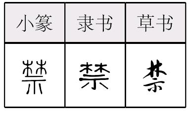 *禁jìn13画 示部 (1) 不准许;制止: ~烟|~赌|严~入内。 (2) 条规、法令、习俗所不允许的事项: 犯~|海~|宵~|违~品|入境问~。 (3) 旧指帝王居住的地方;皇宫: ~中|~军|宫~|紫~城。 (4) 拘押: ~闭|监~|囚~。 (5) 指监狱: ~子|~卒|在~。 另见jīn(194页)。 禁 ☚ 祟 禫 ☛ 禁1.jìn 2.jīn1.jìn 古代形声字。从示,林声。声母演变如监蓝、兼廉例。有人说这些声母汉代以前是复辅音,就是gl-,后来分化成两个辅音。示字旁表示与神有关。《说文》说禁是吉凶之忌,忌讳。引申指法律或习惯上制止的事。如:入国问禁|宵禁。又引申指拘押。如:监禁。又引申为不许,制止。如:禁止攀折花木。 2.jīn 中古以后转为禁受,受得住,耐(用)。或是“经”的双声转音。如:禁得起|这种布禁穿。引申为忍耐。如:他不禁(忍不住)笑起来。 禁★常◎常