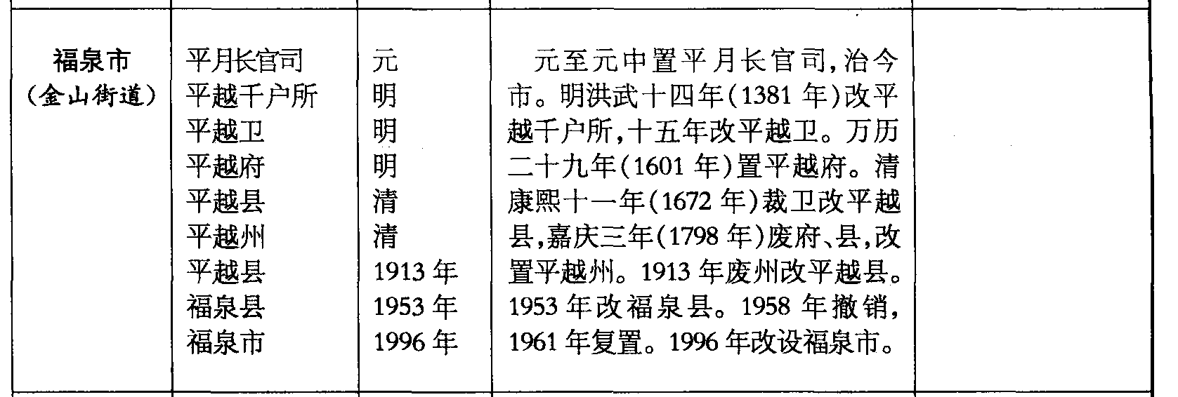 元至元中置平月长官司,治今市。明洪武十四年(1381年)改平越千户所,十五年改平越卫。万历二十九年(1601年)置平越府。清康熙十一年(1672年)裁卫改平越县,嘉庆三年(1798年)废府、县,改置平越州。1913年废州改平越县。1953年改福泉县。1958年撤销,1961年复置。1996年改设福泉市。