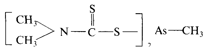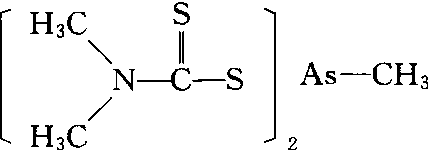 释义 | 福美甲胂urbacide有机砷类有机合成保护性杀菌剂。通常与福美锌和福美双复配成可湿性粉剂销售使用,商品名为退菌特(Tuzet)。福美甲胂化学结构式: CA:[2445-07-0] 1953年首先由联邦德国拜耳(Bayer)公司推广使用。性能 福美甲胂原药为无色无味结晶。熔点144℃,挥发性小,不溶于水,能溶于大多数有机溶剂。对大鼠急性口服LD50为1000毫克/千克。对皮肤和粘膜有刺激作用。对多种作物病害有良好效果。主要作用机制是砷原子与菌体内含巯基(—SH)的酶发生作用,使菌体内的丙酮酸累积,从而破坏其正常代谢和致病能力。 应用 市售的退菌特复配可湿性粉剂有两种。50%可湿性粉剂有效成分组成比例为:福美甲胂12.5%,福美锌12.5%,福美双25%;80%可湿性粉剂比例为:福美甲胂20%,福美锌20%,福美双40%。对水稻纹枯病效果好,使用时可在分蘖末期、孕穗期,用80%可湿性粉剂对水1000~1500倍喷布在稻基部,或施1:50的毒土。稀释500~800倍对小麦白粉病,松、杉苗立枯病和果树炭疽病都有良好防治效果,还可抑制锈壁虱的发生。另外,用种子重量的0.5%药剂拌种,可防治棉苗病害。 福美甲胂urbacide含胂的有机硫杀菌剂。化学名称:双—二甲基硫代氨基甲酰硫基胂。化学结构式如下。无色结晶,不溶于水,溶于大多数有机溶剂。1953年由德国拜耳公司开发为农用杀菌剂,福美甲胂一般不单独使用,主要与福美双、福美锌三者混配成可湿性粉剂。商品名退菌特(Tuzet,德国)、Monzet(日本,北兴)。大鼠急性口服LD50为175 mg/kg,对人畜毒性大,对植物安全性亦差。 |