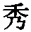 (盛) ☚ 伟 宏 ☛ 秀xiù谷类抽穗开花。白居易《杜陵叟》:“三月无雨旱风起,麦苗不秀多黄死。” 秀 秀xiù不荣而实为秀。荣,开花。《豳风·七月》四章:“四月秀葽,五月鸣蜩。”朱熹《集传》:“不荣而实曰秀。葽,草名。蜩,蝉也。”《大雅·生民》四章:“实发实秀,实坚实好。”毛《传》:“发,尽发也。不荣而实曰秀。”朱熹《集传》:“秀,始穗也。坚,其实坚也。好,形味好也。” ☚ 告 我 ☛ 秀读音x·iu(ˋ),为iu韵目,属ou—iu韵部。息救切,去,宥韵。 ❶庄稼吐穗开花。 ❷优秀。 ❸美丽。如:峨眉天下秀。 上一条: 糔 下一条: 琇 秀xiū❶谷类抽穗开花。例:禾秆正~花结穗。 ❍ 苞谷棒子长~的壮。 ❷草木旺盛。例:禾苗长~的壮实。 ❍ 草木壮~~的旺盛! ❸成长。例:女子越长越清丽~气了。 ❹用同“秃”。秃顶。例:颡上光~~的无发。 ❍ 头亮谢~顶了。 《正字通》:“秀,禾吐华也。”《广雅》:“秀,茂也。”《释名》:“秀者,物皆成也。”朱骏声《说文通训定声》:“秀,今苏俗老而秃顶曰秀顶,秀、秃相近字也。” 秀xiù设圈套,施奸计。〔例〕做“秀”,是老北京的土话,“秀”,说白喽就是设的圈套,或者说是一种假招子,但外人瞅着跟真的似的。做“秀”炸桌是饭虫的惯招儿,但是现如今这个“秀”越做越大了。(众12)∣这些鸟虫儿,有时当“托儿”,有时作“秀”当广告员,足把鹦鹉的价码抬了那么一下。(众35)∣笔者在采访中了解到,拿某人物做挡箭牌,是“饭虫儿”作“秀”的一招儿。(人一80) 秀sieu213[sieu]小巧精致,秀气 ⊳只双皮鞋真~(这双皮鞋很秀气)。 秀ㄒㄧㄡˋxiù二2712①名爱人。中原官话。河南中牟。②名人嗾狗奔跑的吆喝声。晋语。山西忻州〖 〗。③形有才学。北京官话。北京〖 〗。人家心里~着呢。④形(眼睛)露出倦态。北京官话。北京〖 〗。眼睛发~。⑤形调皮。中原官话。青海西宁〖 〗。⑥形节俭。西南官话。云南昆明〖 〗。太~了,连肉都舍不得吃!⑦形吃得少而偏食。吴语。浙江苍南金乡〖 〗。吃~。⑧形太拘谨。兰银官话。甘肃武威。⑨动投(篮球)。东北官话。东北〖 〗。他~得可准了。⑩动(人)用力吸进某物。江淮官话。江苏盐城、阜宁:管子插进去,一瓶汽水一分钟不到就~下肚了。   秀xiu谷物吐穗开花。白居易《杜陵叟》诗:“麦苗不~多黄死。”《论语·子罕》:“苗而不~者有矣夫!”(苗:长苗。夫:语气词。) 秀❶〈隐〉宋明行院指细。见《行院声嗽·通用》。 ❷〈隐〉北京盗窃团伙指扒窃。 秀xiù❶庄稼等植物抽穗开花 △ 谷子~穗了。 ❷优异出众 △ 优~。 ❸优秀出众的人才 △ 影坛新~。 ❹俊美;美丽而不俗气 △ 俊~|山明水~。 ❺姓。 秀❶植物吐穗开花,多指庄稼:~穗︱苗而不~。 ❷美:~丽︱~美︱~气︱~雅︱~媚(mei)︱清~︱俊~︱娟~︱挺~︱韶(shao)~︱~外慧中︱眉清目~︱山清水~。 ❸特别优异的:优~︱内~︱心~︱后起之~。 ❹宋、明间称官僚、贵族子弟:不郎不~。 ○闺~(称有钱有势人家的女儿)。 秀xiù❶ 庄稼等植物抽穗开花:高粱秀穗开花。 ❷ 俊美,清秀:秀丽︱山清水秀。 ❸ 优异出众:优秀。 ❹ 优秀出众的人才:乐坛新秀︱后起之秀。 ❺ 姓。 秀xiù〈动〉 表演、展出。 秀xiù〈名〉表演、展示。系英文“show”的音译。 ◇ 如果大多数人认定克林顿在向大陪审团做供时做了伪证,且这种欺骗是对国家人民的,那么无论克林顿再做多少泪眼秀,也不能挽回他提前下台的命运儿。(中华儿女.1998.12) ◇ 展示曰“秀”(show),口若悬河,能说会道曰“脱口秀”,时装表演曰“时装秀”。当然,也有把“秀”译作“骚”的,不过,这就闹了笑话。(人民日报.2000.12.24) 秀(2次) ❶优秀。独~先些《魂》 ❷美观 沙堂~只《大》 秀xiù特异,与众不同。《招魂》:“独秀先些。”王逸注:“秀,异也。”《文选》五臣注:“秀,异而先进于前。”《大招》:“沙堂秀只。” 秀xiù❶有才学。如:人家心里~着呢。 ❷(眼睛)露出倦态。如:俩眼都~了,该睡了。/眼睛发~。 秀xiu秀才 秀发(fa) 秀丽 秀美 秀媚 秀气 秀色 秀士 秀雅秀逸 闺秀 娟秀 俊秀 内秀 翘秀1 清秀 韶秀2 挺秀 心秀优秀 秀才人情3 秀而不实 秀色可餐 秀外慧中 才调(diao)秀出4不郎不秀5 后起之秀 眉清目秀 苗而不秀6 山清水秀 钟灵毓秀7秀才不出门,能知天下事 秀xiù〈名〉表演;演出。如:作秀;泳装秀。[英show] 秀xiù美丽而不俗气;清秀:借得山川~,添来景物新。(十七—十八·393)毫端运~临霜写,口齿噙香对月吟。(三八·877)