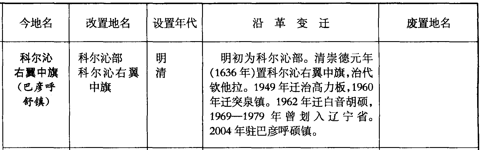 科尔沁右翼中旗(巴彦呼舒镇)科尔沁部科尔沁右翼中旗明清明初为科尔沁部。清崇德元年(1636年)置科尔沁右翼中旗,治代钦他拉。1949年迁治高力板,1960年迁突泉镇。1962年迁白音胡硕,1969—1979年曾划入辽宁省。2004年驻巴彦呼硕镇。