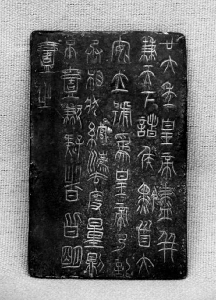 释义 | 秦诏版 秦诏版是秦始皇兼并天下,统一中国后,建立郡县,统一车轨,统一文字,统一度量衡等一系列规划的物证,是反映中国社会进步的历史文物之一,也是秦始皇对七国“文字异形”进行改革,以丞相李斯等整理厘定的小篆为典范文字的史籍。 秦诏版是指在量器、衡器上的文字。有直接刻于量器和衡器的铜权上,也有在铁权上镶嵌铜版,将诏辞刻于其上的。诏辞曰: “廿六年皇帝尽并兼天下诸侯,黔首大安,立号为皇帝。乃诏丞相状、绾,法度量则,不壹歉疑者,皆明壹之。”各器所刻基本相同,也有少数加刻二世诏辞的。 诏版上的书法,大多是未经书写便直接凿刻其上的,故与秦刻石不同。秦刻石传为李斯所书,是典范小篆的楷模; 诏版虽同为规范文字,而凿刻者是徒隶、工匠等底层人物,其所表达内容与秦刻石也大不相同。诏版文字的最大特点是: 笔线瘦硬方折,有行无格,有时行亦弯曲,文字则多数先紧后松,先密后宽。如秦权上的诏版,连行都不齐,与量的诏版比较,同样“皇帝”二字,权上书法扁方,量上书法瘦长,都是随器形而变化的。书法笔画结构,长短疏密各随器物形象安排,恣情凿刻,既具印文分布的法则,又象治印刻边款的放率。天真烂漫,颇有如水在盘之妙。字的结构亦有变化,权的“丞”字上部结体不合,“状”字相抱。“则”字从则,“歉”字未刻“欠”旁作“兼”,“法”、“皆”两字特别倾斜; 量的“廿”、“并”字倾斜,“状”字倚靠,“则”字从鼎,这些已可窥见其变化之多方。 这种书风,可以使我们理解到当时工匠、徒隶的刻写技艺非常精熟。若学习这种风格的文字,以具有能书平正小篆的基础,得法而后化,达到国画的“不求形似”的变形境界,乃为上乘。 秦诏版刻有秦始皇二十六年(前221年)或秦二世元年(前209年)统一度量衡诏书的青铜版。始皇诏版屡有出土,二世诏版仅见传世品。或镶嵌在铜、铁权上,或钉在木量上,内容证明秦代确将统一度量衡制度有力地推行全国。 秦诏版 秦诏版qin zhaoban秦代。铜质。1961年咸阳长陵火车站北沙坑出土。长方形,长10厘米,宽6.5厘米,厚0.2厘米,正面刻秦始皇为统一天下度量衡而发布的诏令。文曰:“廿六年,皇帝尽并兼天下诸侯,黔首大安,立号为皇帝。乃诏丞相状、绾,法度量则不壹,歉(嫌)疑者,皆明壹之。”共40字。现藏陕西历史博物馆。 ☚ 秦汉咸阳窑址 秦直道遗址 ☛ 秦诏版刻有秦始皇或秦二世统一度量衡诏书的青铜版。也叫 “秦量诏版” 。有的镶嵌在铜或铁权上,有的四角或边缘带孔,钉在木量上。秦始皇诏版曾在陕西咸阳、山西左云、山东文登等地出土。秦二世的诏版,至今还只有传世品。秦始皇的诏书是: “廿六年,皇帝尽并兼天下诸侯,黔首大安,立号为皇帝,及诏丞相状、绾:法度量,则不壹,歉疑者,皆明壹之。”秦二世的诏书是: “元年,制诏丞相斯、去疾: 法度量,尽始皇帝为之,皆有刻辞焉。今袭号,而刻辞不称始皇帝,其于久远也,如后嗣为之者,不称成功盛德。刻此诏,故刻左,使毋疑” 。这两种诏文,在许多秦代量、衡器上常可见到,标明它是官定之器。而在“商鞅量” 和 “高奴禾石铜板”上加刻此种诏文,说明秦始皇仍以商鞅所定度量衡制度作为标准。 秦诏版刻有秦始皇廿六年或秦二世元年统二度量衡诏书的铜版。有的镶嵌在铜、铁权上,有的四角或边缘带孔,应是钉在木量上的。秦始皇帝诏版曾在陕西咸阳、甘肃镇原等遗址出土,嵌于权身的秦始皇帝诏版,曾在山西左云、山东文登等地出土。秦二世诏版,除传世品外,仅有个别出土。秦始皇二十六年统一度量衡诏书为:“廿六年,皇帝尽并兼天下诸侯,黔首大安,立号为皇帝。乃诏丞相状、琯: 法度量则不一歉疑者,皆明壹之。”二世诏为:“元年制诏丞相斯、去疾、法度量尽始皇帝为之,皆有刻辞焉。今袭号而刻辞不称始皇帝,其于久远也,如后嗣为之者,不称成功盛德。刻此诏,故刻左,使无疑。”《史记·秦始皇本纪》云: 二十六年“一法度衡石丈尺,车同轨,书同文字。”秦诏版的发现,是秦在全国推行统一度量衡的物证。 |