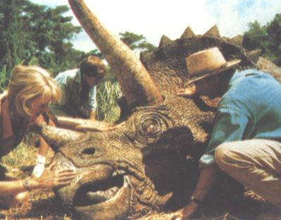 释义 | 侏罗纪公园 【片头介绍】: 1993 彩色片 125分钟 美国环球影片公司摄制 导演:史蒂文·斯皮尔伯格 编剧:迈克尔·克里奇顿(根据其同名长篇小说改编) 大卫·克佩 摄影:狄恩·坎迪 主要演员:山姆·尼尔(饰艾伦·格兰) 罗拉·邓(饰曼丽·萨特) 杰夫·高登布姆(饰伊安·马尔科姆) 理查德·艾登布禄克(饰约翰·哈蒙特) 本片获1994年美国影艺学院最佳音响、最佳音响效果剪辑、最佳视觉效果三项奥斯卡金像奖 【剧情简介】: 在中美洲,距离哥斯达黎加200公里外有一座小岛伊斯拉奴布拉尔,有如世外桃源。 然而,在月黑风高之夜,岛上却发生了一宗离奇事件。 在全副武装的工作人员监视下,一群工人正把一头头神秘的野兽从小笼子赶往大笼子。人们看不清楚笼中物是何方神圣,但从其挣扎吼叫之状,可感受出工人们的惊恐非比寻常。 眼看笼中的庞然大物就要冲出来了,主管劳勃·马尔登只得下令开枪。一场可能发生的血腥暴力事件,至此归于沉寂。 在美国蒙大拿州的荒野,动物考古学家艾伦·格兰博士和古植物学家爱丽·萨特博士正在挖掘史前恐龙的化石。 这时候,一架直升机降落挖掘现场。从机舱走下满头白发的绅士约翰·哈蒙特,他前来的目的是代表哈蒙特财团邀请格兰博士与萨特博士参加一项史无前例的壮举。当两人正犹豫时,哈蒙特即从口袋掏出一张巨额支票,声称是财团赠送给他俩作三年考古研究的经费。俩人非常高兴,他们终于可以完成恐龙化石的挖掘工作了。 格兰博士、萨特博士和另一位应邀的数学家伊恩·马尔科姆博士,跟哈蒙特和代表投资财团的律师唐纳德·真纳罗等一行五人,坐上专机径直飞往伊斯拉奴布拉尔岛上。 原来,这是哈蒙特处心积虑布置好的计谋。 因不久前在岛上发生的血腥意外,身为“侏罗纪公园”负责人的哈蒙特为了让投资财团安心,乃亲自邀请三位专家到岛上视察,以便对公园的安全措施进行探讨。 当一行人抵达目的地后,哈蒙特带领众人前往岛上的恐龙研究所,披露他建设“侏罗纪公园”的真意。原来,哈蒙特利用现代生物遗传工程技术(DNA),从一只含有吸过恐龙血的蚊子(此蚊子包藏在琥珀内得以保存亿万年不变)身上抽取出恐龙的遗传基因,再培养出恐龙的胚胎来加以繁殖,使这种绝迹了的史前动物得以在现代再生。哈蒙特把这些恐龙豢养在此小岛上,并投入大量资金在岛上建起各种设施,造成一座轰动全球的观光公园——侏罗纪公园。 哈蒙特深信此计划一定成功,但马尔科姆博士却提出了“混沌理论”警告哈蒙特,表示岛上的电脑控制器材未必可以防止祸乱发生。格兰博士和萨特博士也对这项计划有所怀疑,但代表投资者的律师真纳罗却坚决支持,令哈蒙特稍感安慰。 在前往控制中心的途中,格兰博士等人亲眼目睹一头庞大的腕龙正在嚼食数十尺高树上的绿叶,不禁感到既惊奇又兴奋。 到达控制中心后,一行人又在孵化室里目睹一只小恐龙从恐龙蛋中钻出来,令他们不得不佩服哈蒙特计划的神奇。 不久之后,他们分乘两辆电动车沿著高速导轨开始视察整个侏罗纪公园。哈蒙特的孙女儿蕾克丝和孙子蒂姆也加入了游园的行列。格兰博士不喜欢小孩子,把他们赶到第二车与萨特博士同坐。 沿途绿树成荫,长满奇花异草,大家兴致勃勃,甚至走出车门步行赏景。 萨特博士发现了一头卧病倒地的三角龙。停下来研究它的病因。萨特嘱真纳罗照顾两个小孩,自己走回控制中心求救。 不久,天色骤暗,整个公园的控制系统突然发生异常故障。 电话中断,电源断电。到底发生了什么事?原来是电脑工程师丹尼斯·奈德利将公园中的警报系统暂时解除,趁机潜入孵化室窃取恐龙的胚胎,装在特制的小型冷冻库内,然后坐上吉普车,偷运至停舶在岛的东端的一艘小艇上。 只要交易完成,他就可以赚到150万美元的酬金。 此时,风暴袭击了小岛。 顿时天昏地暗。 游园的电动车断了电,格兰博士和马尔科姆进退维谷。 道路两侧防护用的高压电网完全发挥不了作用,一头肉食的暴龙撞破了铁丝网,向两人奔来,吓得他们弃车逃命。 另一方面,小孩子这边也发现了暴龙的踪影,真纳罗怕得要命,丢下两人独自逃跑至附近的一间厕所里。 蕾克丝和蒂姆急忙到车上躲避。按照恐龙的习性,只要不动,不发生声音,恐龙是不会向人袭击的。岂料蕾克丝不小心将手电筒往暴龙的方向照射,导致暴龙将车子掀翻。 在危急关头,格兰博士与马尔科姆找到他们,用灯光引开了暴龙的攻击目标。 暴龙追逐马尔科姆,结果把躲在厕所的真纳罗击伤了。格兰带著蕾克丝往山下逃,蒂姆则因脚被夹住无法脱身,随车子一起滚下山去,被崖边的一棵大树钩住而逃过一劫。 萨特博士和马尔登从控制中心赶到,救出了受伤的马尔科姆,却陷入了恐龙的包围,唯有拼命逃跑。 至于奈德利,则在倾盆大雨中迷了路,随吉普车一起陷进山溪中,正好成为盔龙的食物,真可谓恶有恶报。 暴雨过后,黎明来临。格兰博士与蕾克丝、蒂姆等三人在大树上歇息,一觉醒来,却赫然发现一头大腕龙正用双眼盯著他们。幸好腕龙是素食动物,不会伤人。蕾克丝看它长得可爱,就伸手摸摸它的鼻子,不料腕龙向著她打喷嚏,喷了她一身。 格兰博士带著两个小孩爬下树后来到大草原,以为危险已经过去,不料有一大群速龙从远处向他们狂奔而来,遂急忙躲到一棵卧倒的大树干下面,眼看著速龙从他们头顶上飞跑过去,吓