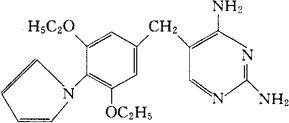 C19H23N5O2=353.42 CAS-73090-70-7 2,4-二氨基-5-(3,5-二乙氧基-4-吡咯-1-基苄基)嘧啶。 2,4-Diamino-5-(3,5-diethoxy-4-pyrrol-1-ylbenzyl)pyrimidine. 5-[[3,5-二乙氧基-4-(1H-吡咯-基)-苯基]甲基]-2,4-吡啶二胺。 5-[[3,5-Diethoxy-4-(1H-pyrrol-yl)phenyl]methyl]-2,4-pyridine diamine. 抗菌药。 Epiroprim Ro 11-8958. INN,USAN.  |