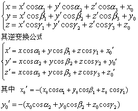 释义 | 空间坐标变换 空间坐标变换kongjian zuobiao bianhuan指的是空间同一点关于新、旧坐标系的坐标间的变换公式。移动空间直角坐标系的原点而不改变坐标轴的方向和长度单位称为空间直角坐标系的平移。设空间任意一点P对于旧坐标系OXYZ的坐标为P (x,y,z),对于新坐标系O′ X′ Y′ Z′ 的坐标为 (x′y′z′),新原点O′ 对旧坐标系OXYZ的坐标为 (x0,y0,z0),则空间直角坐标系的移轴公式为: x=x′ +x0,y= y′ + y0,z=z′ +z0。用P点的旧坐标表示它的新坐标的逆变换公式为: x ′=x-x0 ,y ′=y-y0,z′ =z-z0。