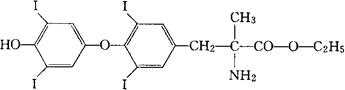 释义 | 依塞罗酯 C18H17I4NO4=818.95 CAS-17365-01-4 α-甲基-DL-甲状腺素乙酯。 α-Methyl-DL-thyroxine ethyl ester. O-(4-羟-3,5-二碘苯基)-3,5-二碘-α-甲基酪氨酸乙酯。 O-(4-Hydroxy-3,5-diiodophenyl)-3,5-diiodo-α-methyl-tyrosine ethyleste. 降血脂药。 Etiroxate,Skleronorm,CG 635. INN,USAN. |