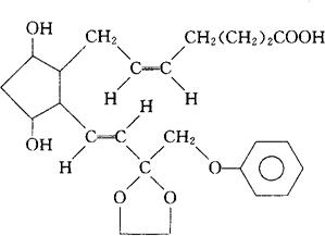 释义 | 依替前列通 C24H32O7=432.51 CAS-59619-81-7 (Z)-7-[(1R,2R,3R,5S)-3,5-二羟-2-[(E)-2-[2-(苯氧甲基)-1,3-二氧戊环-2-基]烯乙基]环戊基]-5-庚烯酸。 (Z)-7-[(1R,2R,3R,5S)-3,5-Dihydroxy-2-[(E)-2-[2-(phenoxymethyl)-1,3-dioxoln-2-yl]vinyl]cyclopentyl]-5-heptenoic acid. 前列腺素类药,堕胎药。 Etiproston. INN,USAN. |