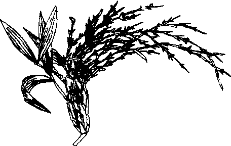释义 | 竹丛枝病witches broom of bamboo又称扫帚病、雀巢病。日本及中国江苏、浙江、安徽等省均有发生。病原菌为子囊菌亚门,核菌纲,球壳菌目,疣座菌属,竹瘤座菌〔Bal-ansia take (Miyake)Hara〕。主要为害淡竹和刚竹,还能为害早竹、哺鸡竹、箣竹、麻竹、短穗竹、毛竹等。病枝节间缩短,侧枝丛生,叶变小呈鳞片状,常成鸟巢状下垂。病枝顶端叶鞘内产生白色米粒状物,即病菌的分生孢子座;后在分生孢子座一侧产生淡褐色垫状的子囊座。一般在抚育管理不良、生长细弱的竹林易发病。4年生以上的竹子,林缘及强日光的地方也易发病。宜加强竹林的抚育管理,按期砍伐老竹,樵园压土施肥,促进新竹发生;在产生子实体前,及早剪除病枝;不在病竹园内选用母竹。 竹丛枝病症状 |