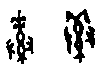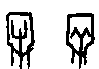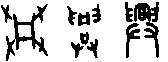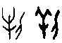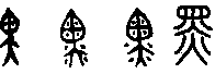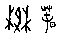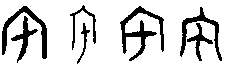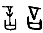 , 古文爵如此。 象形】, 商代之溫酒爵形。爵柱 (